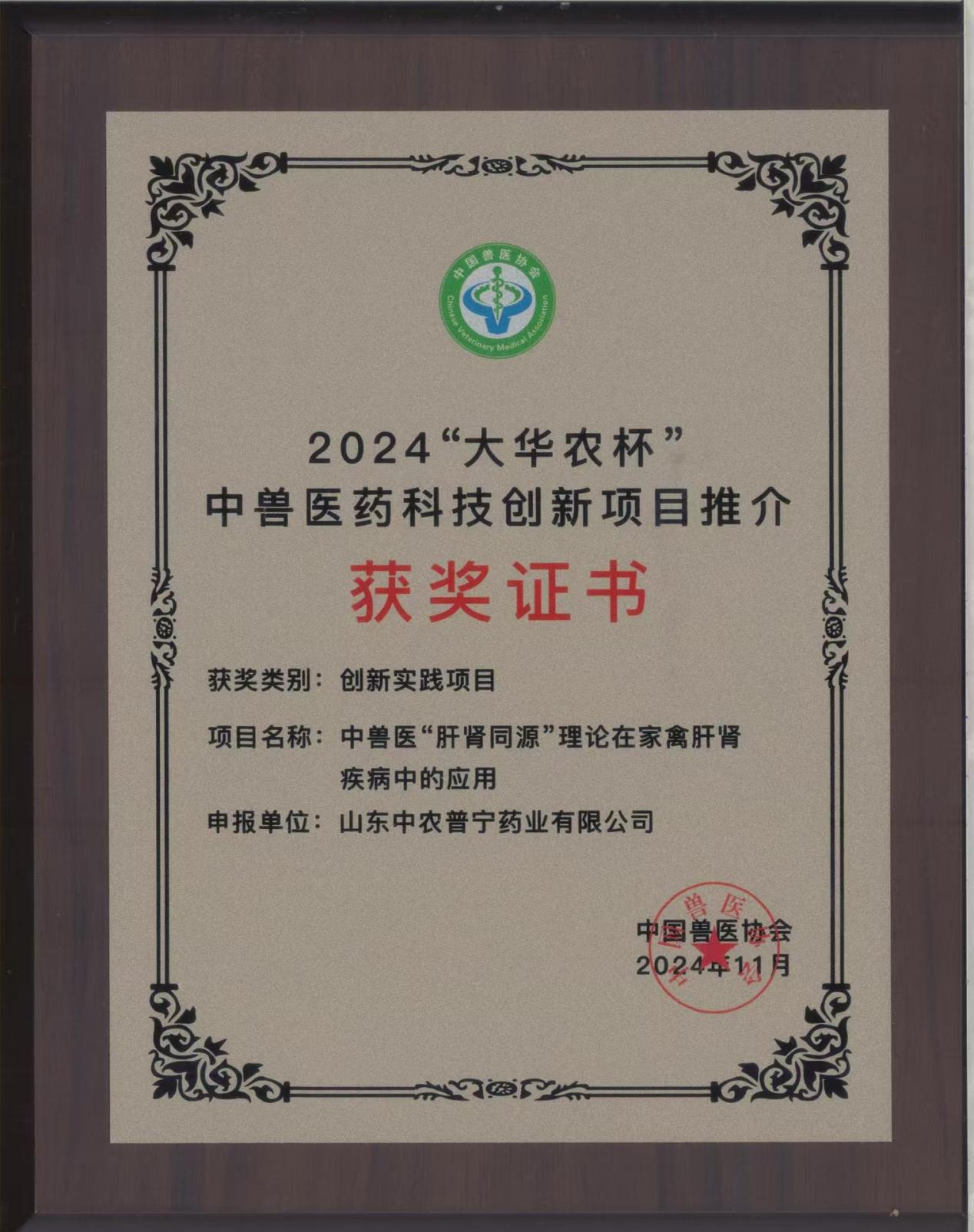 論壇以“中獸醫·中獸藥—one health新質(zhì)生產(chǎn)力”為主題,圍繞中獸醫藥的傳承創(chuàng )新、人才培養和平臺共建三大核心議題進(jìn)行。在本次論壇中,公司技術(shù)總監王金紀的《中獸醫“肝腎同源”理論在家禽肝腎疾病中的應用》(暨甘甚寶研發(fā)理念和思路),榮獲中國獸醫協(xié)會(huì )2024年“大華農杯”中獸醫藥科技創(chuàng )新項目獎。