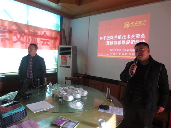 公司營(yíng)銷(xiāo)總監劉總、技術(shù)總監王總、吉英商貿劉總等參加了本次活動(dòng)。會(huì )上王總結合當前實(shí)際情況,給廣大養殖戶(hù)朋友們講解了一場(chǎng)生動(dòng)、實(shí)用的一堂課;隨后王總對蛋雞寶產(chǎn)品及公司新開(kāi)發(fā)的幾個(gè)產(chǎn)品做了重要講解并與大家互動(dòng)交流,特別針對大家養殖中的難點(diǎn)困惑給予了詳細解答。會(huì )后大家紛紛表示本次學(xué)習交流會(huì )受益匪淺。