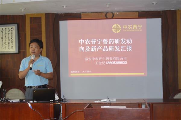 隨后公司技術(shù)研發(fā)總監王金紀先生做了具有指導性意義報告,王總對當前國家對獸藥企業(yè)的研發(fā)生產(chǎn)法規、獸藥研發(fā)形勢、行業(yè)發(fā)展現狀、公司現有產(chǎn)品情況給予了詳細說(shuō)明。