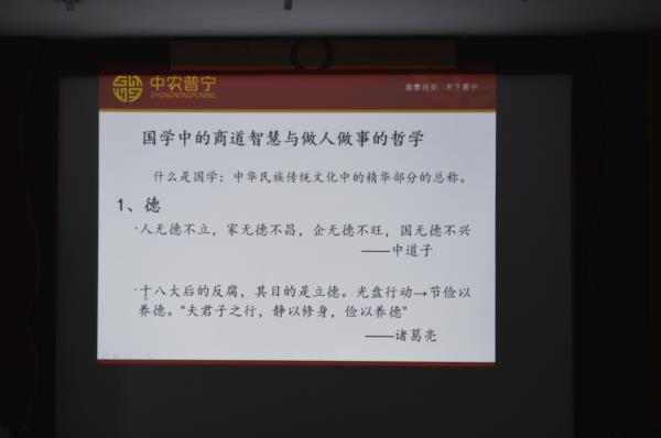 康總本次報告重點(diǎn)將在山大總裁辦學(xué)習到的國學(xué)智慧分享給大家,要求大家做事先做人徳孝為先,做好個(gè)人修行傳遞正能量!使大家感受頗深。